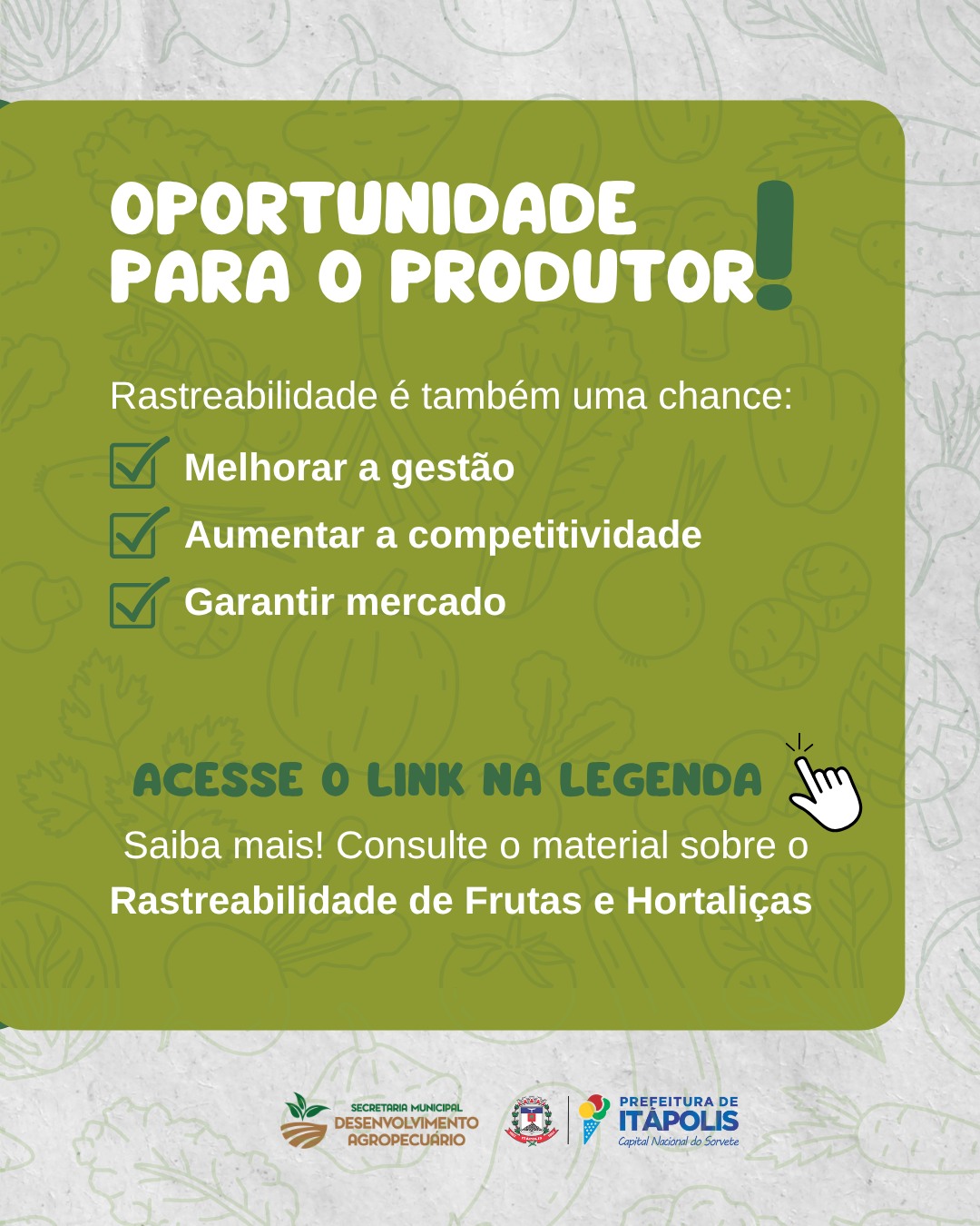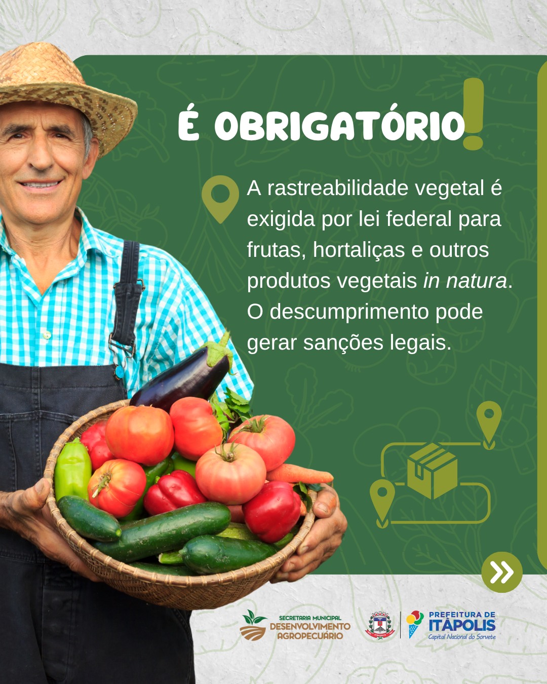 A Secretaria Municipal de Desenvolvimento Agropecuário está intensificando o incentivo à rastreabilidade vegetal, um procedimento obrigatório por lei que garante a origem e o controle de frutas, hortaliças e outros produtos vegetais in natura – do campo até a mesa do consumidor.