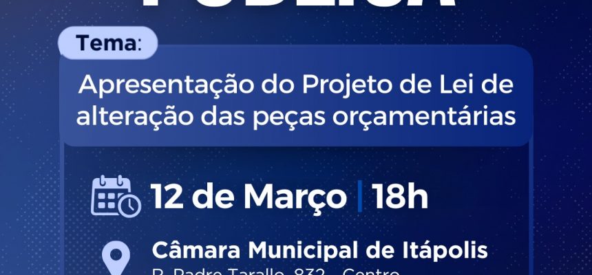 A Prefeitura de Itápolis realiza Audiência Pública para apresentar e discutir o Projeto de Lei de alteração das peças orçamentárias.