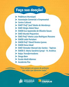 Separe sua doação, compartilhe essa ideia e faça parte dessa corrente do bem!