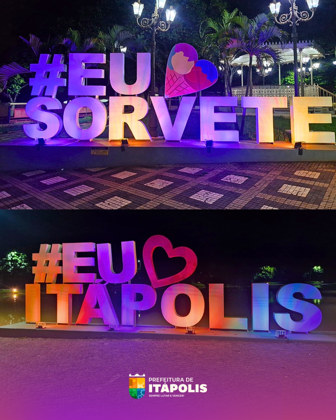 Durante este mês, alguns pontos da cidade receberam iluminação especial nas cores roxa e laranja, simbolizando o apoio de Itápolis às campanhas de conscientização do Fevereiro Roxo e Laranja.