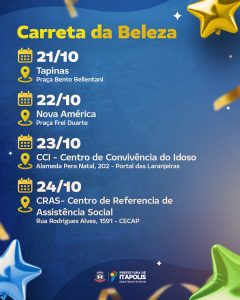 A programação tem bolo de aniversário, shows com música sertaneja e rock, brinquedos, cinema gratuito com filme vencedor do Oscar, Carreta da Beleza e muita diversão.