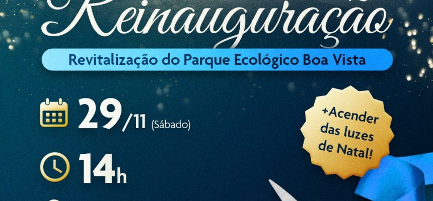 Você é nosso convidado especial para a cerimônia de inauguração da revitalização do Parque Ecológico “Boa Vista” e acender as luzes de Natal, sábado 29 de NOVEMBRO 2025.