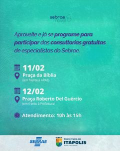 O Sebrae estará em nossa cidade para apoiar quem já empreende e também quem sonha em abrir o próprio negócio. Uma oportunidade de receber orientação, tirar dúvidas e dar novos passos rumo ao crescimento profissional – tudo de forma gratuita e pertinho de você!